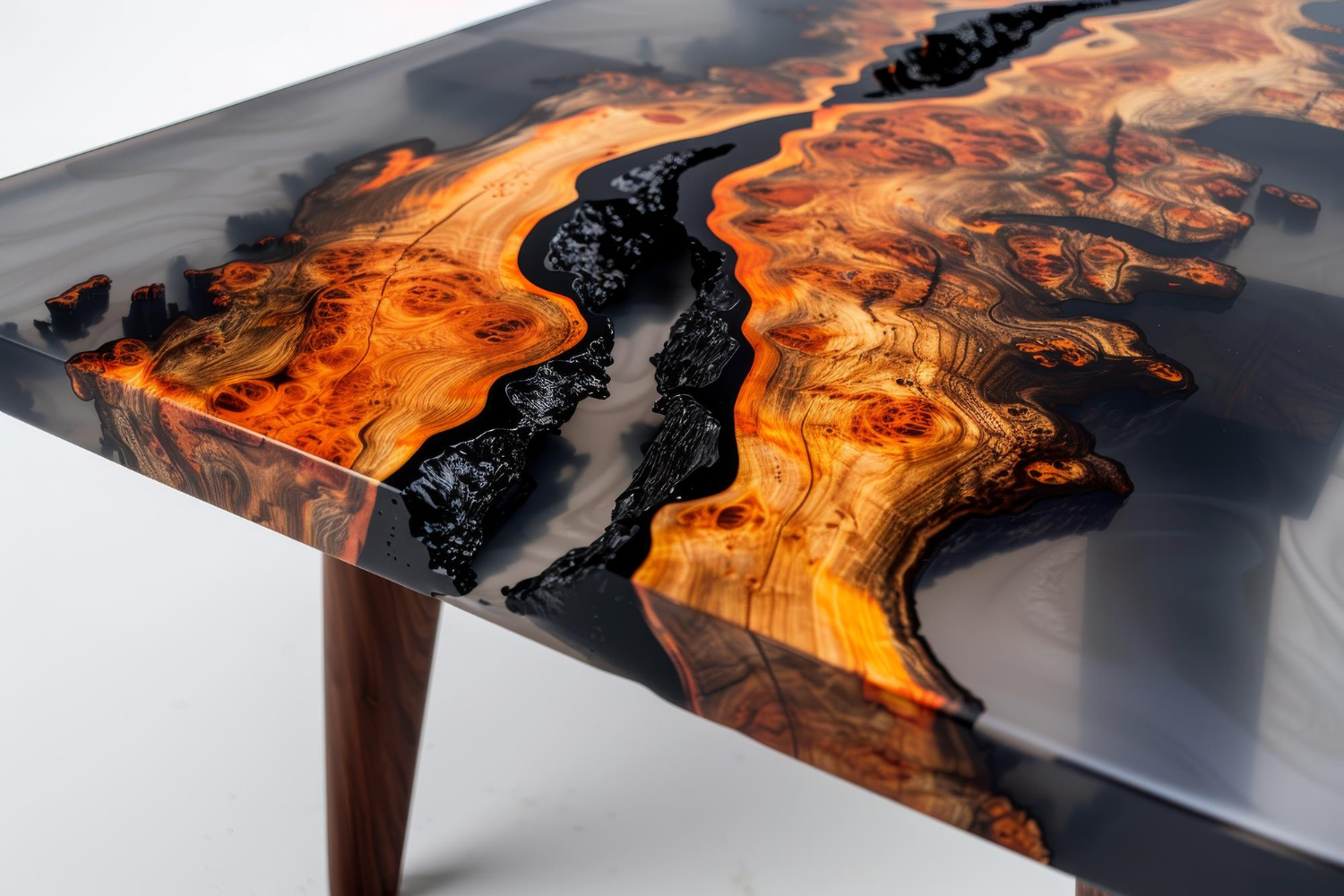 Epoxidová živica je pevný, odolný a mimoriadne trvácny materiál, ktorý sa výborne hodí na výrobu nábytku aj dekorácií. V tekutom stave si vyžaduje presnú prácu a správne podmienky, no po úplnom vytvrdnutí je úplne bezpečná – bez zápachu, bez toxických výparov a bez akýchkoľvek reakcií s predmetmi či potravinami.